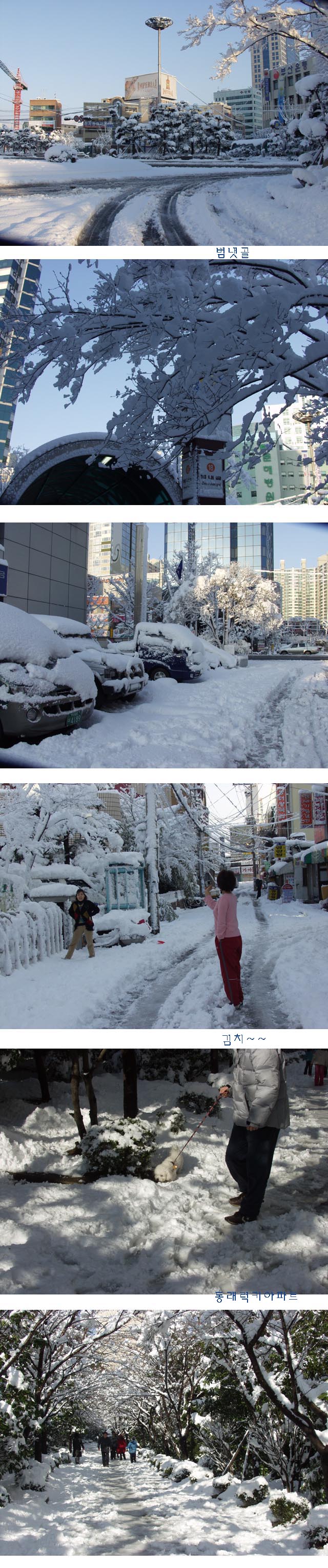 좁은 눈길에 북새통을 이루고.