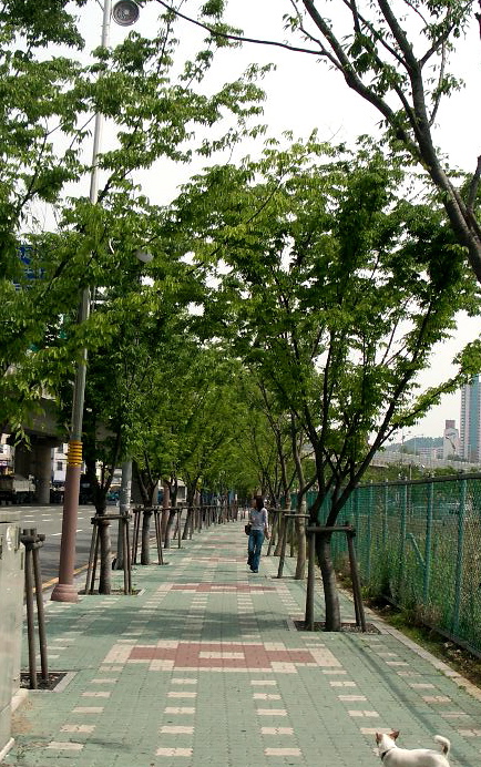 부산 금융단지 중심이 될 34000평의 황무지 의 크로바 꽃 더미와 단지 둘레의 느티나무 길입니다